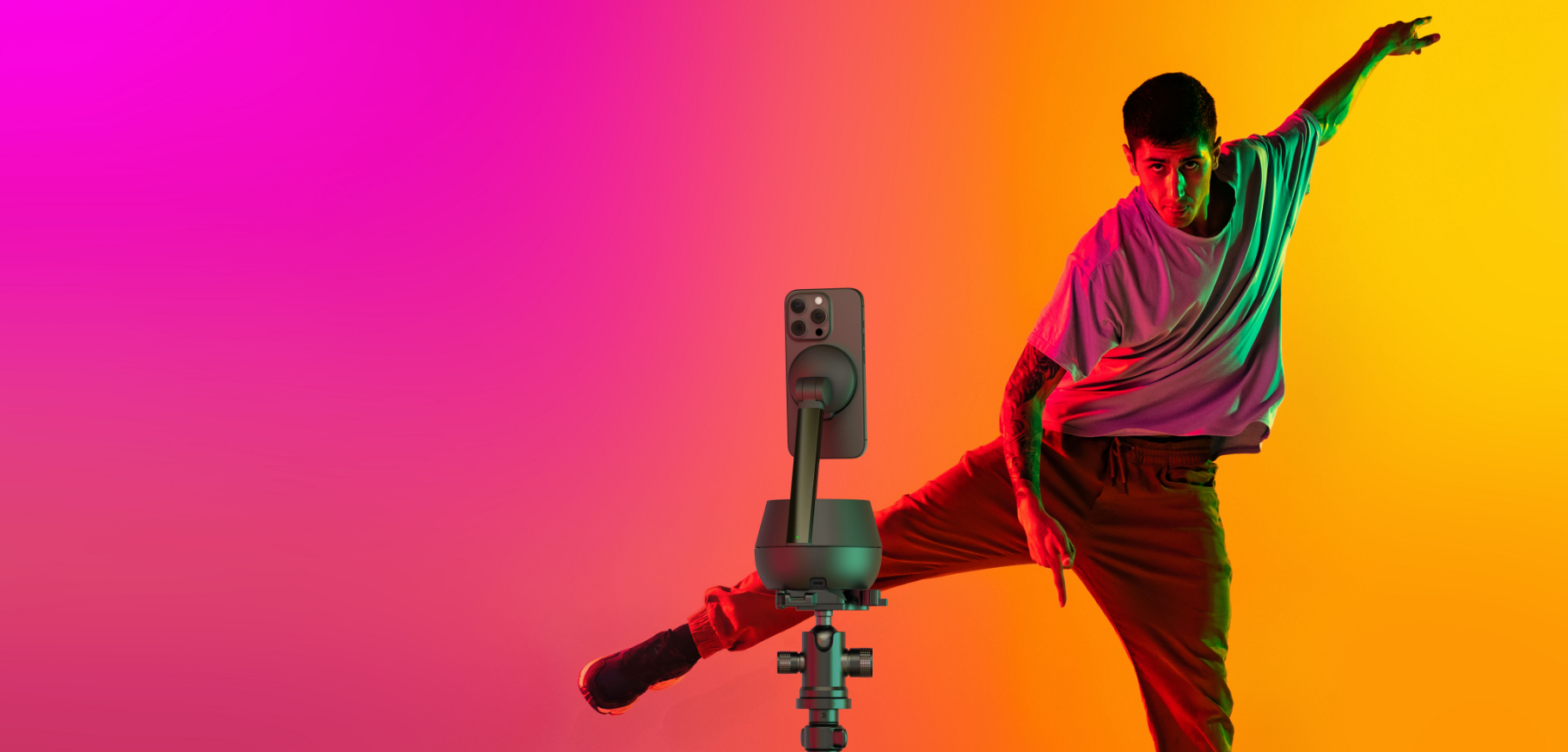Ο πιο εύκολος τρόπος να πραγματοποιείτε βιντεοκλήσεις στο FaceTime, να δημιουργείτε βίντεο γεμάτα δράση και να έχετε ελεύθερα τα χέρια σας σε ροές ζωντανής μετάδοσης και βιντεοδιασκέψεις είναι εδώ. Το Auto-Tracking Stand Pro ακολουθεί τις κινήσεις του προσώπου και του σώματός σας με περιστροφή 360° και κλίση 90°, με μοτέρ ομαλής και ήσυχης λειτουργίας. Φορτισμένο και πανέτοιμο για χρήση — η εσωτερική μπαταρία εξασφαλίζει 5 ώρες λειτουργίας σε πλήρη φόρτιση.