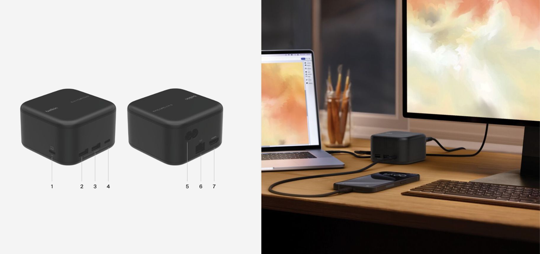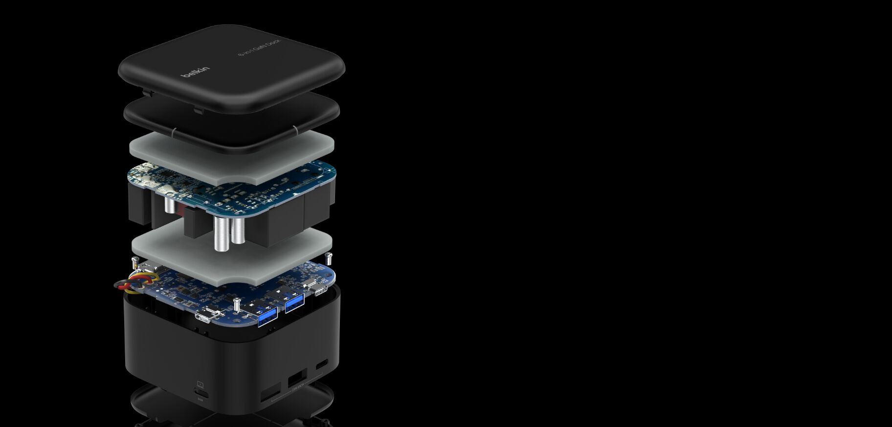 Η δύναμη του GaN έρχεται στη δική σας βάση φόρτισης με τη λύση τύπου 6-σε 1. Η συμπτυγμένη αυτή βάση διαθέτει ενσωματωμένο τροφοδοτικό GaN ισχύος 130W που παρέχει 96W ισχύος στη συσκευή υποδοχής, υποστήριξη οθόνης 4K 60Hz, θύρες USB-C και USB-A και ταχύτητες μεταφοράς δεδομένων έως 5Gbps.